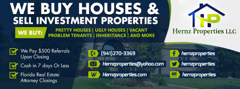 We buy houses for cash and have the ability to close in as little as 7 days. If you are looking to sell a home we would like the opportunity to make an offer on your house. We also specialize in obtaining foreclosure bargains and bank owned properties at 40% to 65% of after repair value. You’ll find most of your questions answered here on our website however if not don’t hesitate to give us a call (941) 270-3369.